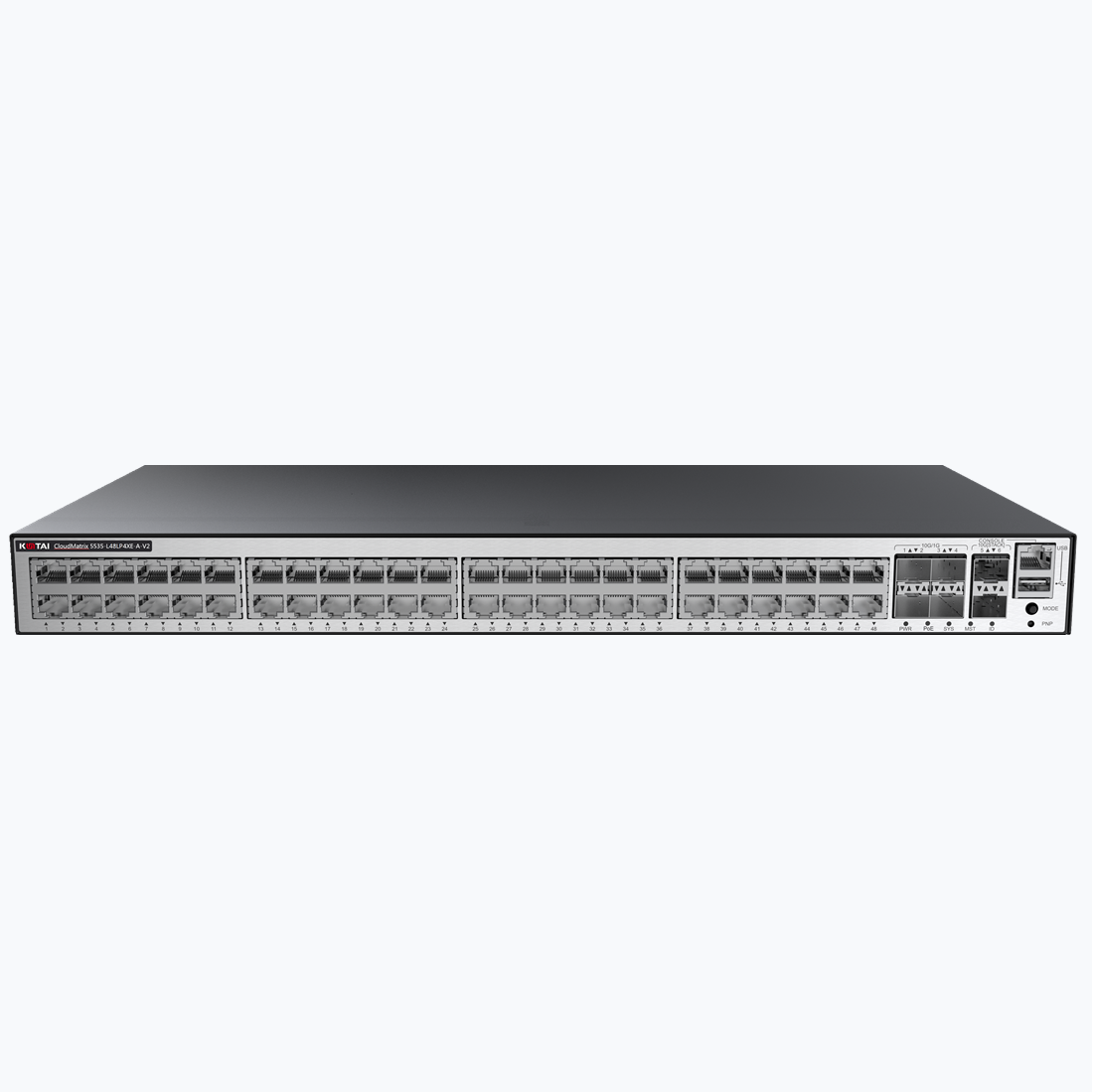 CM5535-L48LP4XE-A-V2 | CM5535-L48LP4XE-A-V2 交换机(48个10/100/1000BASE-T以太网端口,4个万兆SFP+,2个12GE堆叠口,PoE+,交流供电) |